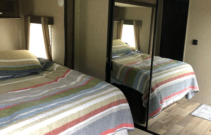 We love our “Gracie” (her name) camper but with a young child at home and busy work schedules, we are unable to use her much. Our loss is your gain. She’s a new and beautiful travel trailer with 2 slide outs, a massive master bedroom, 2 a/c units and a rear living that is comfortable and homey. Too many features to list. We ask no smoking inside and no pets.