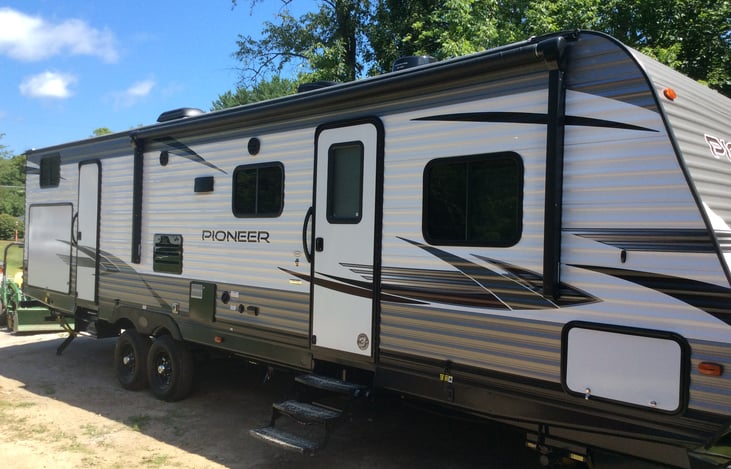 We have been RVing for 25 years and love the RV lifestyle. Our camper is fully stocked. It is like an Air B & B on wheels. There are 5 bunks and a short queen bed. It is our hope that all you need to provide is your clothes and food. The outside kitchen is a great perk. And a charcoal grill.