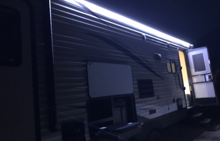 This is perfect for a small family. Sleeps 6 comfortably. No smoking allowed. No pets please. LED lights for interior under lighting and Awning under lighting has a Traeger smoker for cooking. Outside kitchen with fridge also outside shower and built in vacuum cleaner.