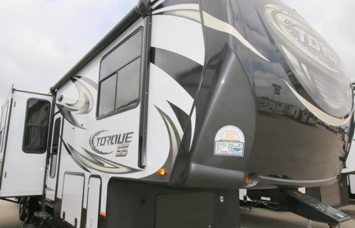 This spacious 2015 Heartland Torque, 5th wheel camper, with 3 slides outs for more room, has sleeping accommodations for up to 6 people. Includes 3 queen beds, 2 being bunk bed style, full bath, kitchen, Sofa, & TV. Some cookware/dishes provided.