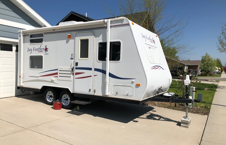 Hi there I have a very nice clean Jayco bumper pull trailer gvwr is 4800 pounds. this is a great little rig I pull it with a Toyota 4 runner. so a v6 or higher is perfect. this trailer has one propane tank, and an electric jack. it also has sway bars for smooth towing. this trailer has all the dishes and utensils you may need for your trip.