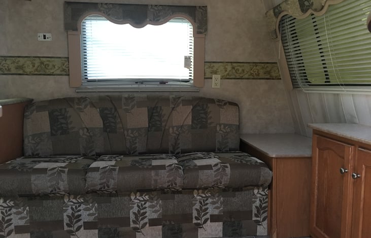 Camper is supplied with toilet paper, plates, bowls, spoons, forks , knifes, toaster, paper towels, pots, pans, dish soap, hand soap and will have complete water and sewage hook up.Camper has an awning for out side siting. This unite has roof top air, heat and hot water.