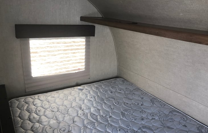 This awesome little camper has everything you need for a nice getaway. Bunk beds and a queen sized bed allow for 4-5 people to sleep comfortably. It also has several windows to let in natural light and enjoy the best nature has to offer.