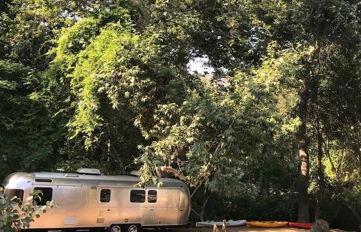 Rv is parked on a Cabin/Deck setup by the river with absolute privacy within acreage of my property, checkout the link http://airbnb.com/h/theriverislandairstream