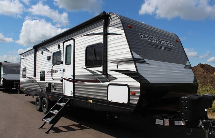 Brand new Travel trailer. Bunk room in back that sleeps 4. Dinning table sleeps up to 2. Couch converts to sleep 1 and master bedroom sleeps 2. 1 Xlarge pullout. Neon outside lights. Electric canopy. Electric stabilizers. Gas or electric water heater. Gas stove and oven. Outdoor shower. Everything you need to hook up at campsite. This camper does not come with a generator.