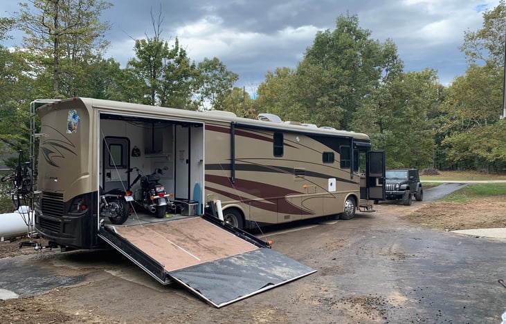 I bought my Newmar new in 2008. i have crossed the us 4 times . lots of rv stories. we carried our 2 Harley's with us in the garage of the MH now we are traveling a lot to euro and Belize so we are not using the MH a lot so we are offering it for rent now this will be our first time renting