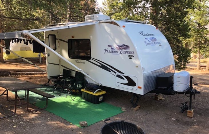 Immaculate small lightweight camper fully stocked for your adventure. Can be towed by a midsize truck or SUV. Perfect for a couple but will sleep up to 4 with dinette table that converts to a 2nd bed. Has all the amenities of a much larger camper.
