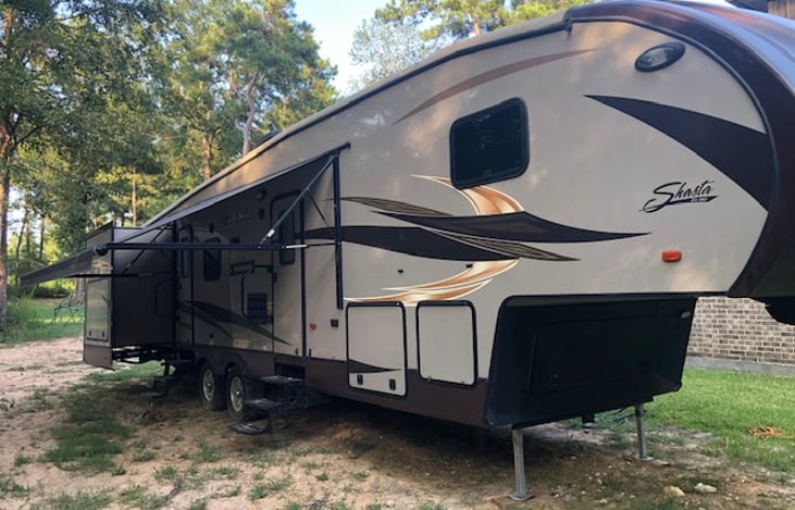 We deliver! Our 5th wheel has an outdoor kitchen with sink and refrigerator. There is a bunk house for the kids with their own bathroom! A Roku TV in the bunkhouse, 2 bunk beds and a full size pull out sofa.