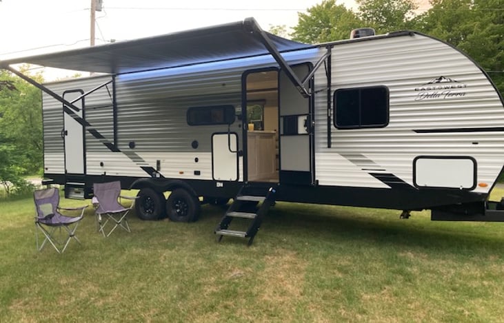 Great camper! Beautiful, clean with great features! Skip (Andrew) delivered the camper to our site and got it set up for us. Great communication- answered ALL of my many questions - very friendly and kind. Excellent selection of kids/family movies!! Plenty of pillows, blankets (all very comfy &soft), towels etc… lots of pots, pans, cookware.