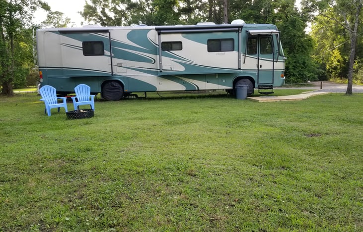 Beautiful and Large Motorhome for your enjoyment. Great for riding and camping. Built for comfort! You will love the layout, two couches and two lounge chairs in living room. Beautiful Round dining table with four chairs in dining room. Lots and Lots of storage!
