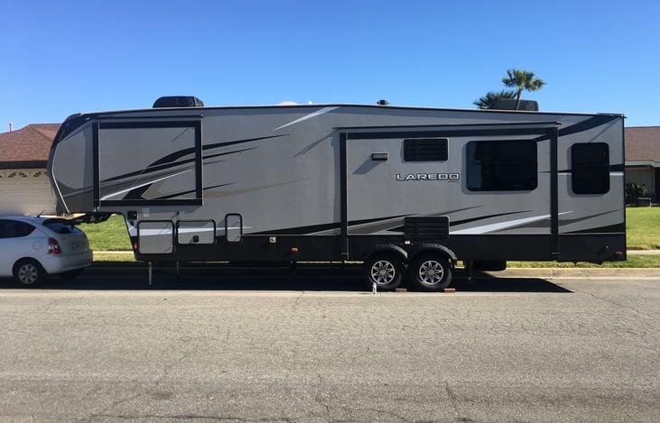 2020 Keystone Laredo. Sleeps 5 . Out door kitchen with tv microwave . 3 TVs surround sound. Full size fridge. Fire place . Generator . Island in kitchen .