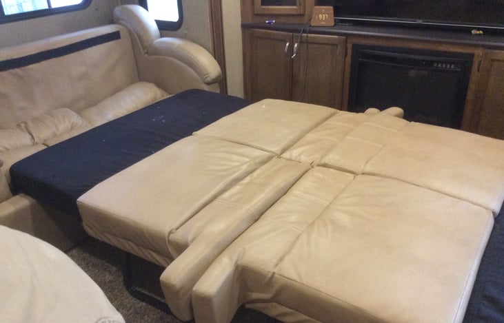 It has a front living room a large TV. It has 5 slide Outs! The bedroom has a king size bed and a large TV. There are 2 air conditioners! There is an electric awning. Free delivery and pickup for 50 miles.Fully stocked with dishes,linens and cookware! No generator!