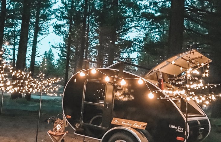 Camp in style with your sweetheart in the adorable “Little” teardrop trailer. Set up camp with the included essentials: mats, a snack table, and a double-person chair! Open up the galley/kitchenette for the perfect outdoor bar and meal prep station. Cozy up in the full-sized bed which is the perfect size for cuddling that person you love to camp with!