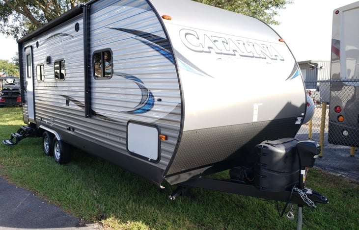 This Catalina trailer is ready for your next wilderness adventure. The living room is spacious with a huge 43" Smart TV and Bluetooth radio. About everything you would need in a kitchen is included. The bedroom has a queen size bed and the bathroom has a big walk-in shower. Trailer rental will include a anti-sway hitch.