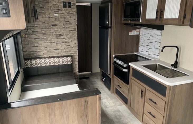 Very new travel trailer, everything in good working order. Owners were very helpful and provided nice equipment for wheel chocks and leveling, city water filter, and surge protector for power. Refrigerator is larger than what we've had on older RV's and could hold much of our groceries. Overall a very good experience.