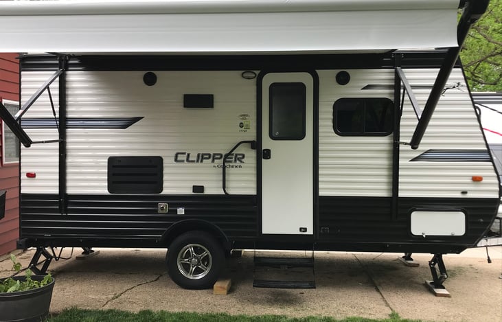 Newer 2020 coachman clipper that is light enough to be towed by an SUV but has a slide out to maximize space! It has a queen bed and the dinette coverts to a 2nd smaller bed. The trailer can sleep 3-4 people, maximum of two adults and two small children (under 6 years old). Comes stocked with silverware, dishes and sheets for the queen bed.