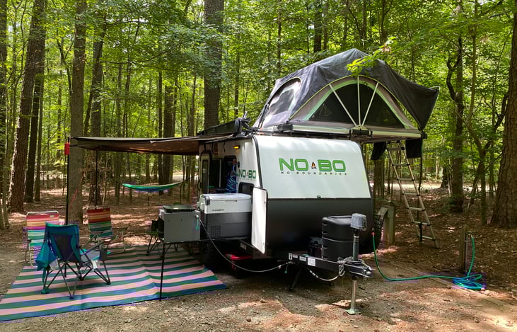 This is a 2020 Forest River No Boundaries 10.6 Travel Trailer. Designed for those who push limits, the versatile and exceptionally light weight No Boundaries (NOBO) travel trailer is rugged enough for any outdoor enthusiast. Perfect to get off the ground to sleep, with air conditioning and heat. You'll love the innovative and durable rooftop NOBO Nest tent.