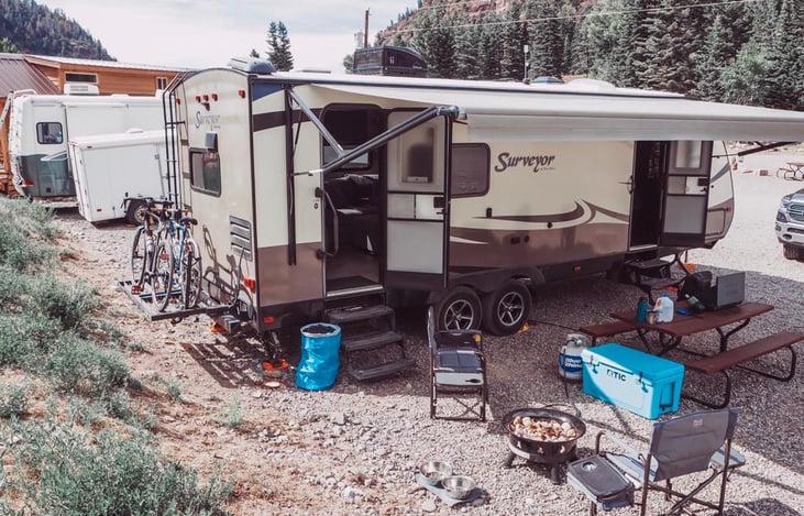 Great camper with everything needed to hook up to your truck and hit the road. Easy set up with the landing gear that is greased. Slide and powered awning are fast along with the front tongue jack. This camper had the amenities like plates, paper towels, etc that was forgot at hone when packing. Nice features like the fire place and blue tooth speakers just to name a few.
