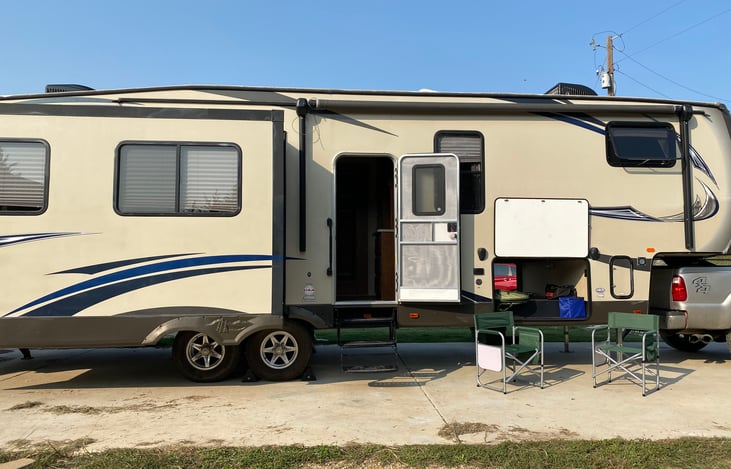 The fifth wheel is an ideal rental for the river or lake, if you want that extra room, this RV is your answer with a separate living room and fireplace every night is perfect. Ask about my delivery and setup service, I'm minutes from the river and lake.