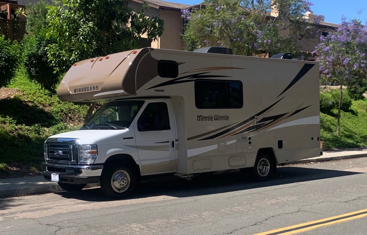 Super clean and easy to drive 2019 Minnie Winnie. One double bed, one convertible sofa bed, and one very spacious bunk over the cab sleeps six people (seatbelts for only 5) and makes camping so much fun (and easy!)