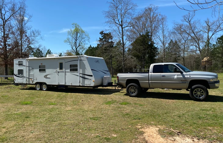Great RV with everything needed for a comfortable camping trip. Bunk beds in the back that sleep 3. Queen bed in the front.