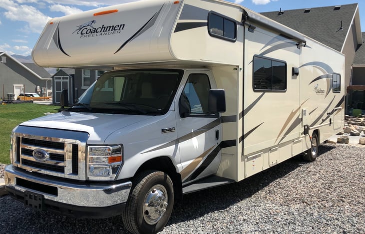 2018 Coachman Freelander LIKE NEW! Our RV is clean and very spacious. SLEEPS 10! Queen, loft, couch, table bed, and also features BUNK BEDS w/ladder!! All beds have linens. Perfect for big families! Two large SLIDEOUTS! A ton of storage inside and out. TV with DVD player, adapter so you can watch while on the road! Essential kitchen items, first aid kit, tool kit, and hazard kit.