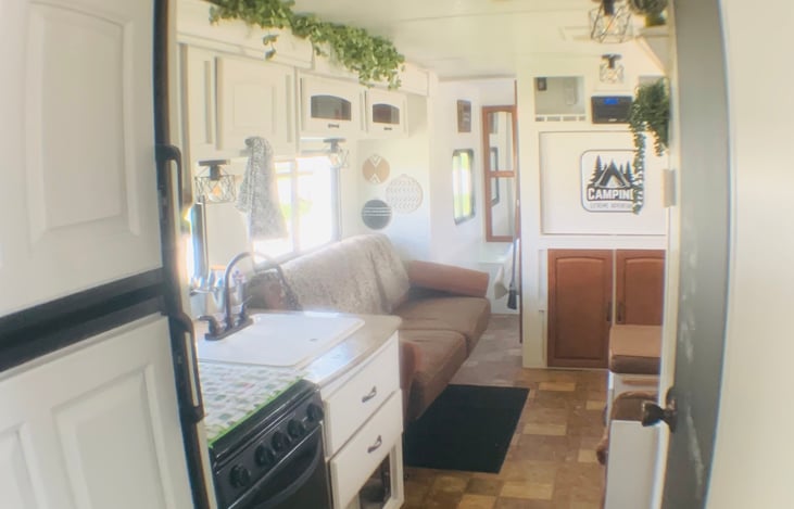 Our beautifully remodeled camper is one of a kind and she comes packed with fun! Board games, tabletop jenga, outdoor tent, outdoor speakers to jam your favorite music, and a projection screen to play your favorite movies. We promise our little home away from home will not disappoint!