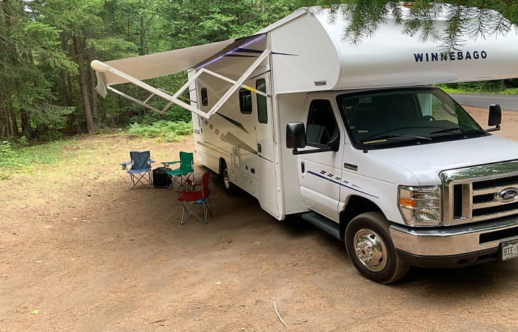 Rent our easy to drive 2019 Winnebago for your next adventure!! Our RV is very cozy and comfortably sleeps 6 between the 3 beds. It has a queen bed in the back bedroom, a full-sized bunk over the cab, and a convertible dinette (twin sized). There is a large bathroom onboard with a shower, sink, and toilet. The dinette includes four seatbelts, as well as the two seats in the cab with seatbelts.