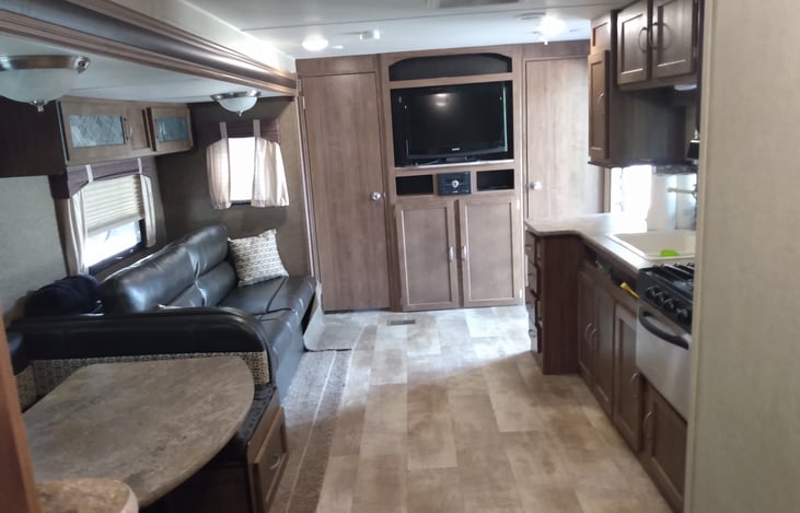 It was awesome. It was so clean, and I mean clean. It had everything you could imagine without being cluttered so you still have room for your food and supplies. It has all the cookware you will ever need. It even had some linens and towels. It had dish soap and hand soap, paper towels, TP, everything. They had games, movies, corn hole boards.
