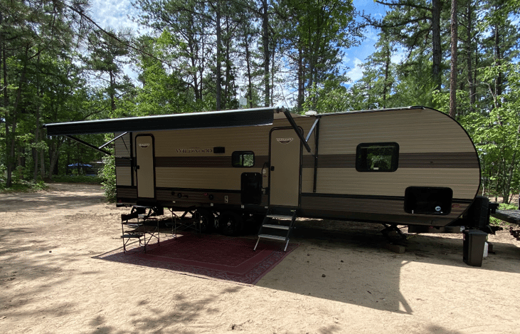 We had a great camping trip this year thanks to Carleigh and Andrew. The camper was beautiful and spotless. When we showed up at the site they had already set up the camper and set out camping chairs, a flattop grill and an outdoor carpet for us. We realized we did not need to bring half of what we did. They we’re incredibly responsive when we had questions throughout the week.