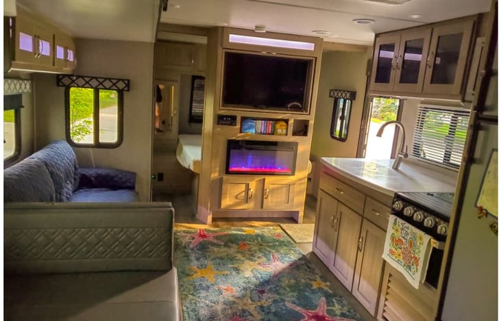 Brand new Coachmen Freedom Express Ultra Light LIBERTY Edition with all the bells and whistles. Perfect for the family - sleeps 9 (3 are smaller bunk beds more suitable for kids). Extra large dinning table/seating, auto stabilizing and auto jacks, plus an amazing outdoor kitchen, a super cool electric fireplace, a swivel tv, master bedroom with window above bed, outdoor shower...
