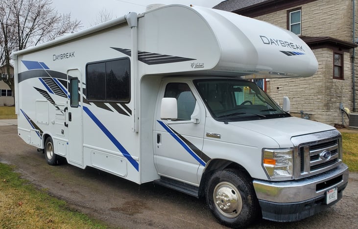 2021 Thor Motor Coach Daybreak 27DB Class C motor home. Sleeps 6 (4 adults and 2 small children) with a king size bed in the back, a jack-knife sofa, a dinette that converts into a sleeping area and a cab-overhead bunk. Big enough to stretch your legs, small enough to fit in all your favorite parks, this RV has 1 slide out. Plenty of storage.