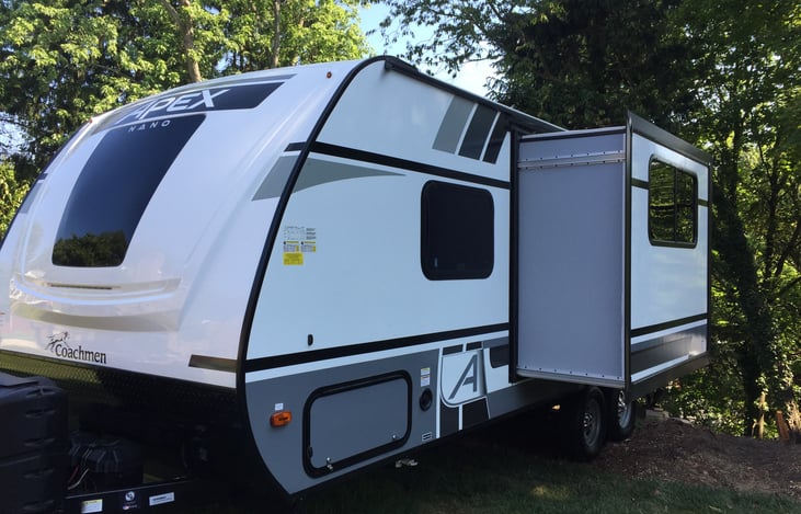 A brand new Coachmen Apex Nano 208BHS (year 2021) pet friendly travel trailer with full amenities (https://coachmenrv.com/travel-trailers/apex-nano/208BHS/4011 ). It has everything you and your family need to enjoy your vacation. Amenities include heat, 13.