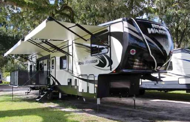 When you are ready for your next vacation to include time outdoors riding the trails and then coming back to the comfort of your home away from home, you will want this double slide out Road Warrior 427 toy hauler! The 12.5' garage has enough room for a few dirt bikes or even an ATV. With the half bathroom in the garage, you can easily clean up before heading inside.
