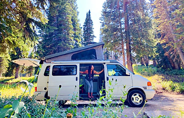 This meticulously maintained tiny home on wheels includes everything you'll need to enjoy the outdoors in low-key comfort. Our 2001 VW Euro Camper-van includes built-in sink, refrigerator (dual propane/electric), 2 burner stove, cooking supplies/utensils included, back shower spray, vehicle air conditioning, vent fan, heater, storage and closet space, and an upgraded stereo system.