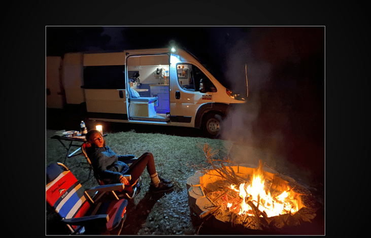 Our new favorite thing is to "glamp" with this van. We go to a legit camp site - there are surprisingly few places to camp (with a fire) for free unless you know someone - and we set up some chairs by the fire. And that is it!