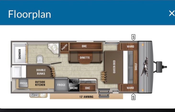 John’s Silver Bullet is a brand new 2021 Jayco Jay Flight SLX 224BH. This bunk house unit has a double bed bunk, twin bed dinette and a queen bed. Spacious bathroom with shower. Plenty of storage in and under the unit. With a dry weight of 4405 lbs, this camper can be pulled with a midsize truck or SUV. Great for a couple to get away in or for the family, this is the perfect camper.