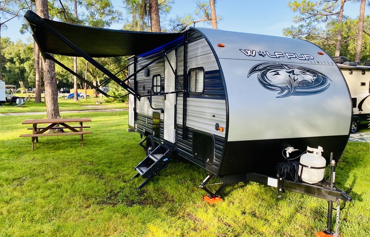 Brand new 2020 24’ Forest River Cherokee Wolf Pup Travel Trailer with queen-size bed and bunkhouse. This travel trailer sleeps up to 6 people comfortably and will provide you and your family with amazing memories along the way.
