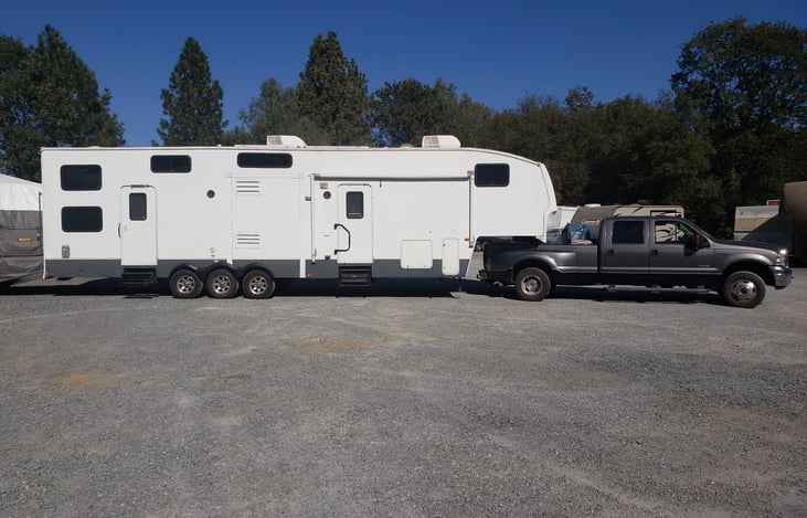 Our 40ft 5th wheel RV has 3 slides to provide extra inside space. It comes fully equipped, includes linens, cookware, dishware, utensils and most anything you would need. 12ft Toy Hauler garage area can be converted to a second living room with sofa if you are not hauling toys. Cool loft sleeping area for the kids. Separate master bedroom.
