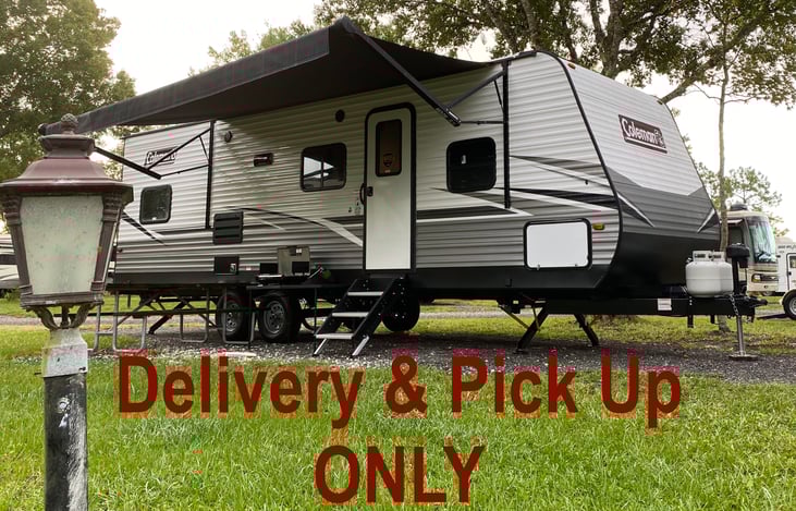This is a well maintaid trailer that we DELIVER and PICK UP at the camp ground of your choice (You will need to book the Camp Ground & email us the booking information including dates and location in order for Delivery and Pick up to be scheduled). We try to stay within 50 miles of our home in the 5 county area, in and around Flagler County, FL.