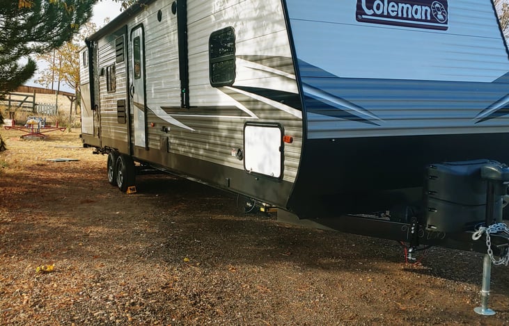 New, very clean tow behind. 2 batteries and 2, 20lbs propane tanks. 3 twin sized beds in the bunk room, kitchen table folds into bed, sofa is a Futon style fold out bed, and 80 inch queen in the master. 28 inch Visio smart TV. Very fun outside kitchen with mini fridge. Kitchen island for tons of counter space. Bluetooth entertainment system. Electric fireplace for heat and mood lighting.