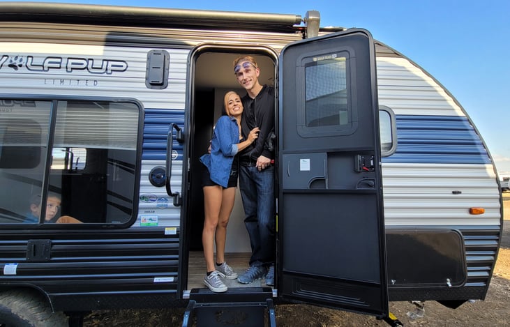 Hey there, thanks for stopping by and checking out the rig. If you looking for an RV that is light, fun, and stylish you have come to right listing. Has the Juice Pack for electrictly without a need for a generator (Solar Panels). The gate also turns into a patio with a screen wall around it, it's pretty neat. The rig is a 2021 Wolf Pup 18 rjb, of you want to Google itnfor any reason.