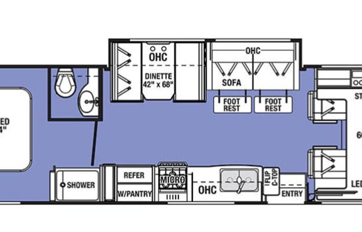 Welcome to Camp Quitcherbitchin, an awesome RV and Grandkids approved! Includes basic linens and pillows for house queen, queen sleeping bag and pillows for over cab area, additional blankets and pillows. Kitchen includes dishware, utensils, toaster oven, countertop ice maker and basic condiments in addition to built-in microwave and oven/stovetop.
