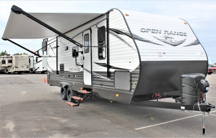 This jazzy camper, a 2021 Open Range 26BHS bunkhouse, is your new best buddy that can snuggly tuck in a happy troupe of eight.
