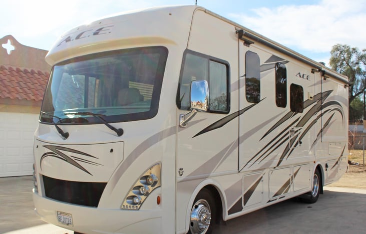 This 2018 Thor Motor Coach A.C.E Class A is in great condition. It is a 28 feet long motorhome with two slide-outs for extending the living area and the bedroom area. It is easy to drive with a V-10 engine and a 6-speed transmission. It sleeps up to 6 people with a king-size bed, drop-down bunk over the cockpit, jack-knife couch/bed, dinette that makes into a bed.