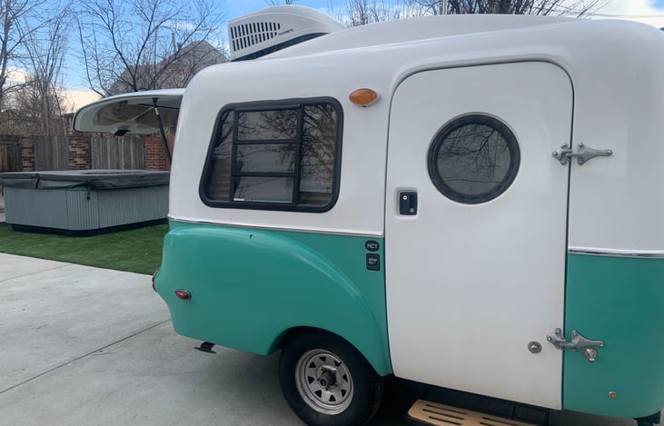 Very light fiberglass camping trailer can be pulled by most cars! This camper will sleep up to two with either a queen sized bed set up or a twin bed set up. and can be moved around with Adaptiv technology storage cubes. It is equipped with heat and A/C if you are hooked up to shore power. Lights, USB outlets, 12 volt outlets and fan are all solar powered.
