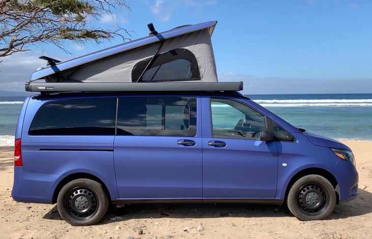 Located in Kaneohe on the beautiful island of Oahu, Pipeline is one of Campervan Hawaii’s Mercedes Metris pop-top campervans with seating for 5 and is great for cruising around the island.
