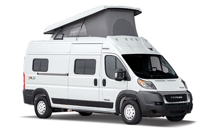 All of our Solis campervans are 59P Models. We have both floorplans – murphy bed and sofa bed. *We can’t guarantee which floor plan you will have unless you have a group of 5 or 6 people and require the additional seat belts provided in the sofa bed model.