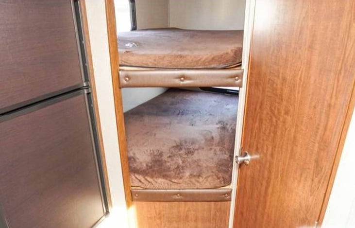 Cozy and clean fun travel trailer. Features an outdoor kitchen for camping and sleeps 8! You may bring your furry friend along too. Very spacious and durable with a nice lcd tv.
