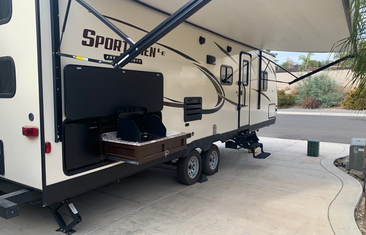 Beautiful trailer ready to make memories. Welcome to our trailer. This is a 2018 Sportsman Travel Trailer, fully self-sustainable, in great condition. It has a front queen size bed private room and two rear queen size bunk beds that can sleep 2 persons each. Our trailer has a dinette table that folds into a one person bed and a leather sofa that also folds into a one person bed.